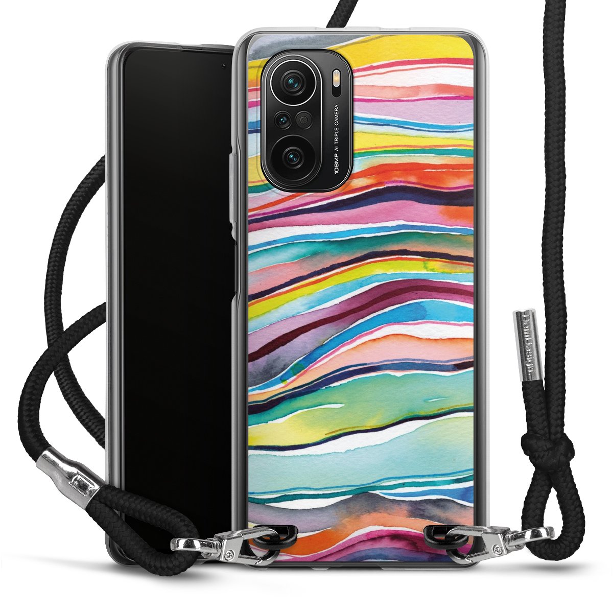 Keep your phone handy at all times, thanks to the flexible silicone case with a textile strap.