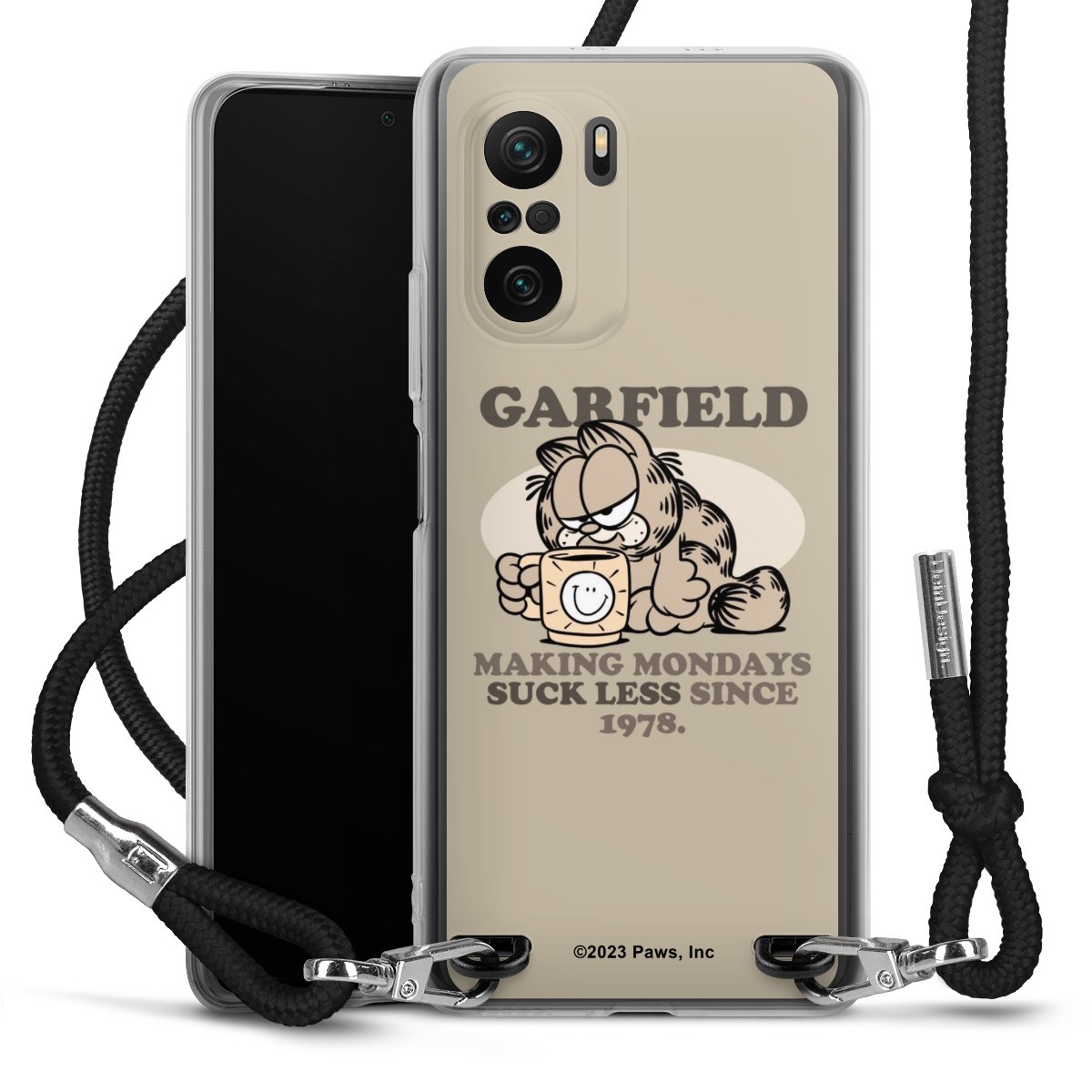 Keep your phone handy at all times, thanks to the flexible silicone case with a textile strap.