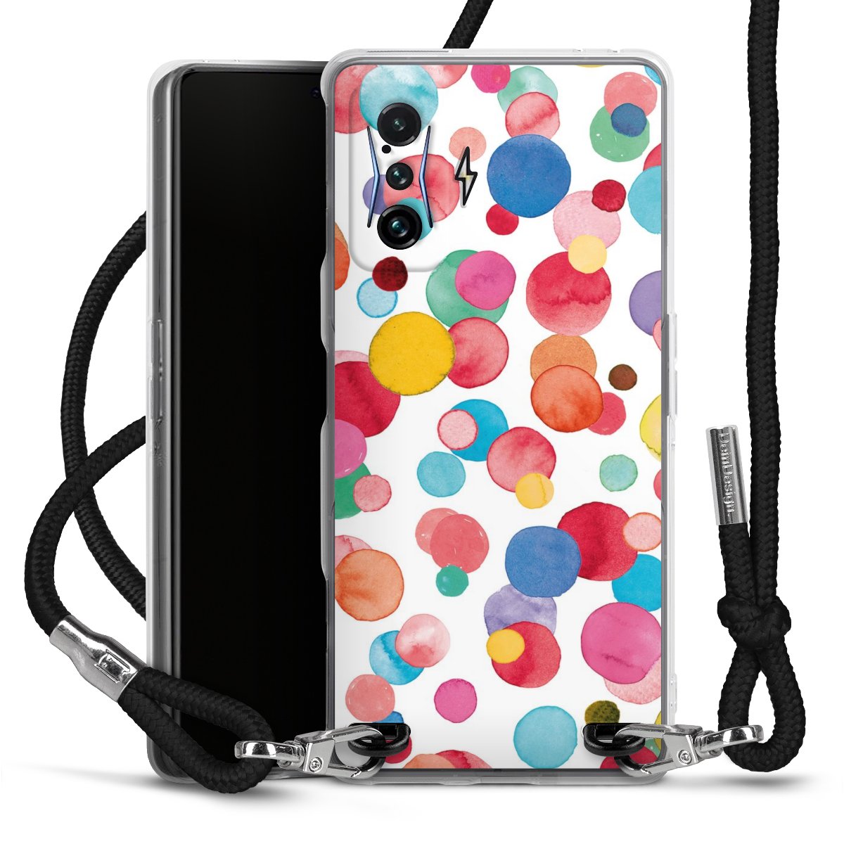 Keep your phone handy at all times, thanks to the flexible silicone case with a textile strap.