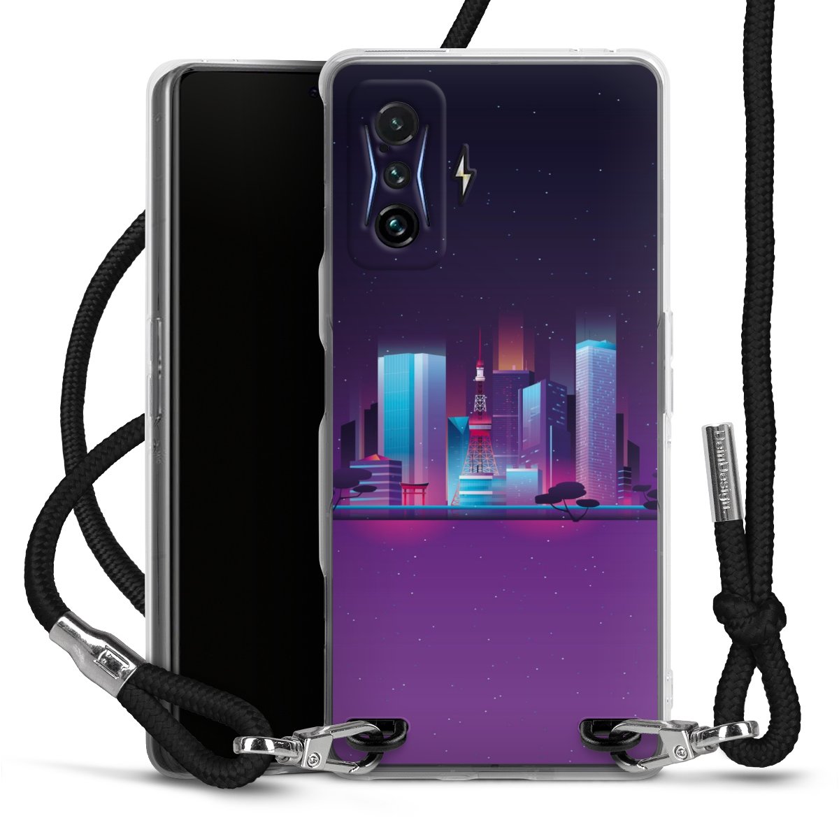 Keep your phone handy at all times, thanks to the flexible silicone case with a textile strap.