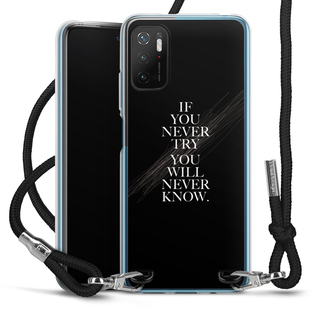 Keep your phone handy at all times, thanks to the flexible silicone case with a textile strap.
