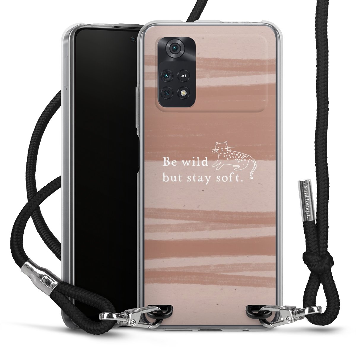 Keep your phone handy at all times, thanks to the flexible silicone case with a textile strap.