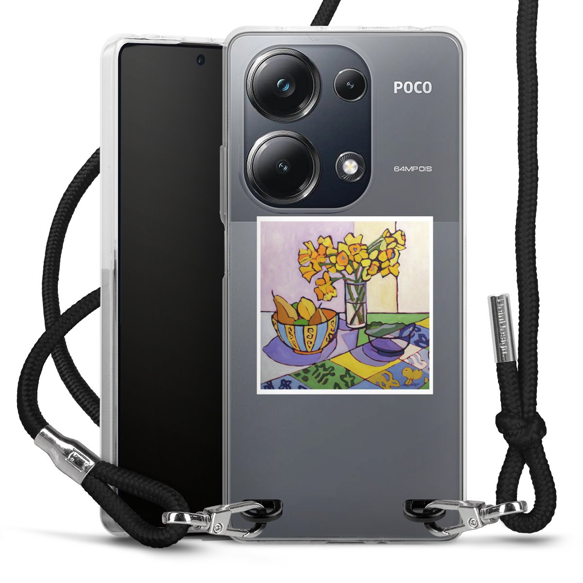 Keep your phone handy at all times, thanks to the flexible silicone case with a textile strap.