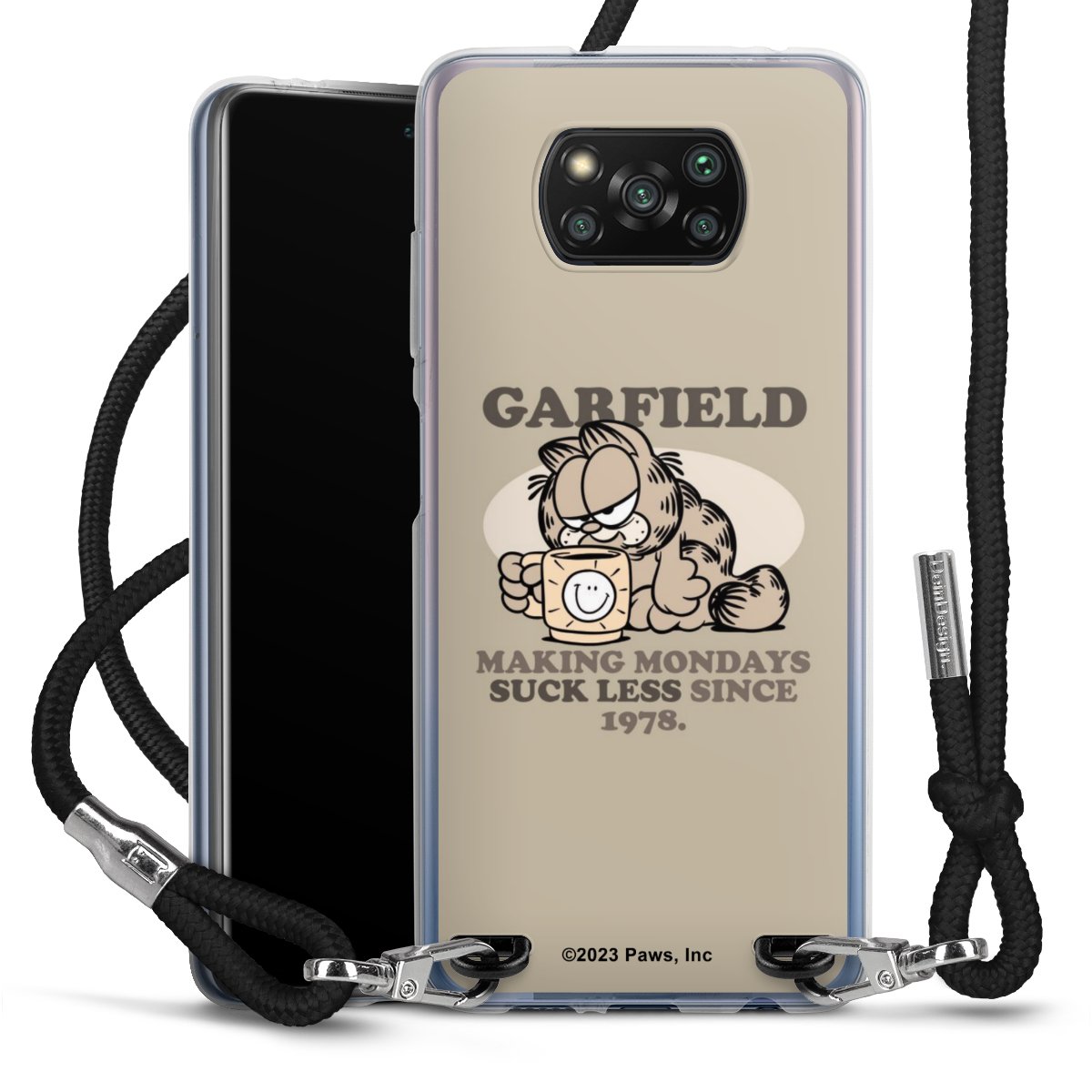 Keep your phone handy at all times, thanks to the flexible silicone case with a textile strap.