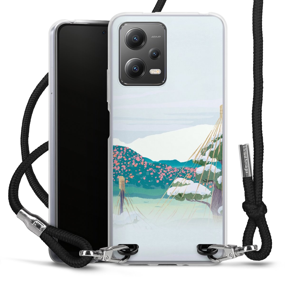 Keep your phone handy at all times, thanks to the flexible silicone case with a textile strap.