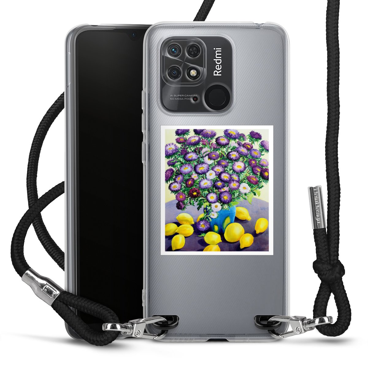 Keep your phone handy at all times, thanks to the flexible silicone case with a textile strap.