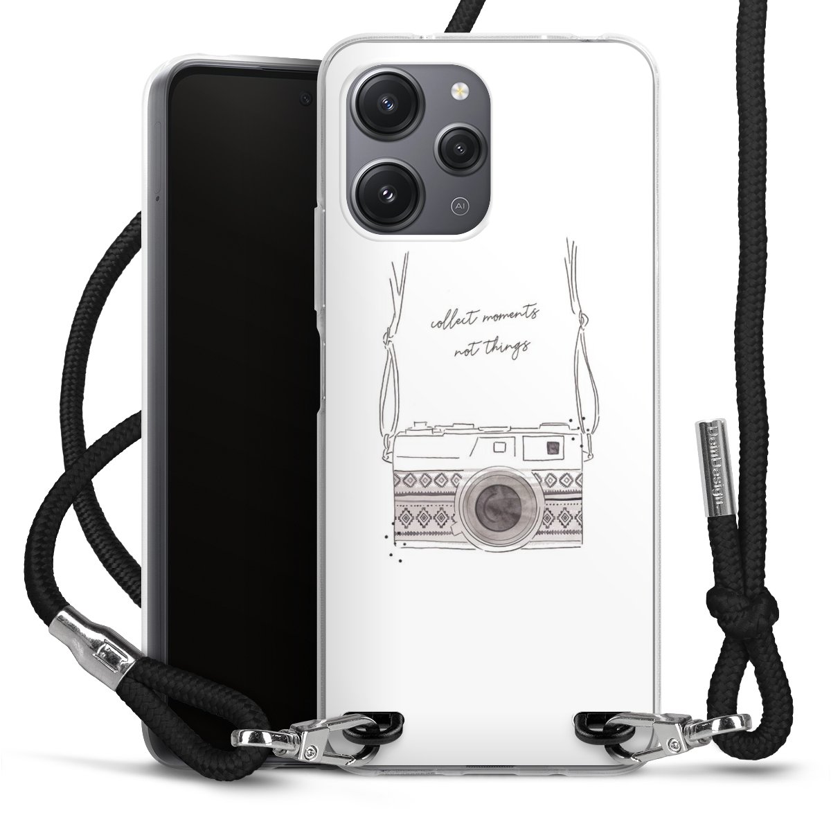 Keep your phone handy at all times, thanks to the flexible silicone case with a textile strap.