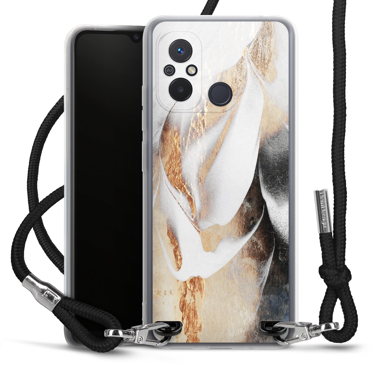 Keep your phone handy at all times, thanks to the flexible silicone case with a textile strap.