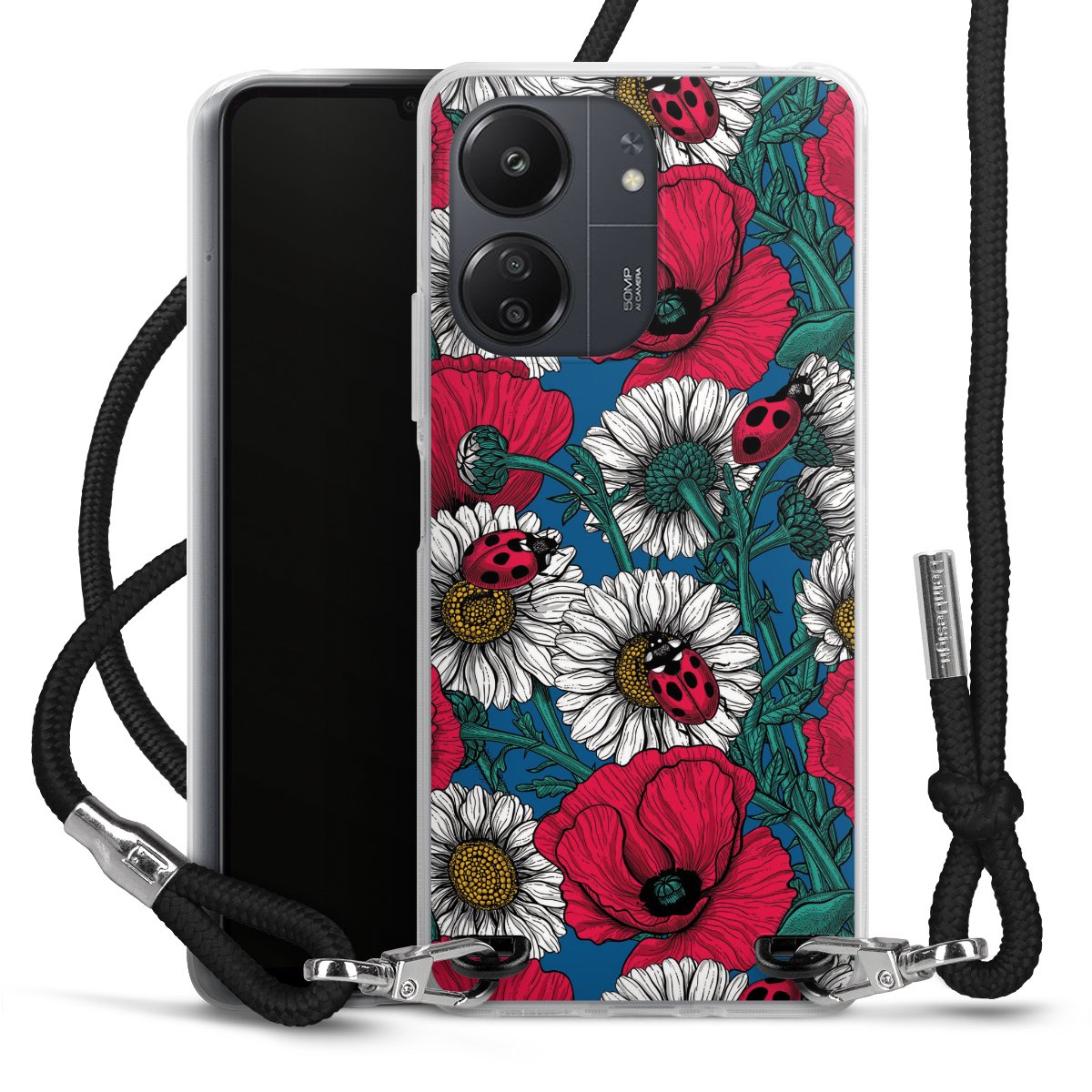 Keep your phone handy at all times, thanks to the flexible silicone case with a textile strap.