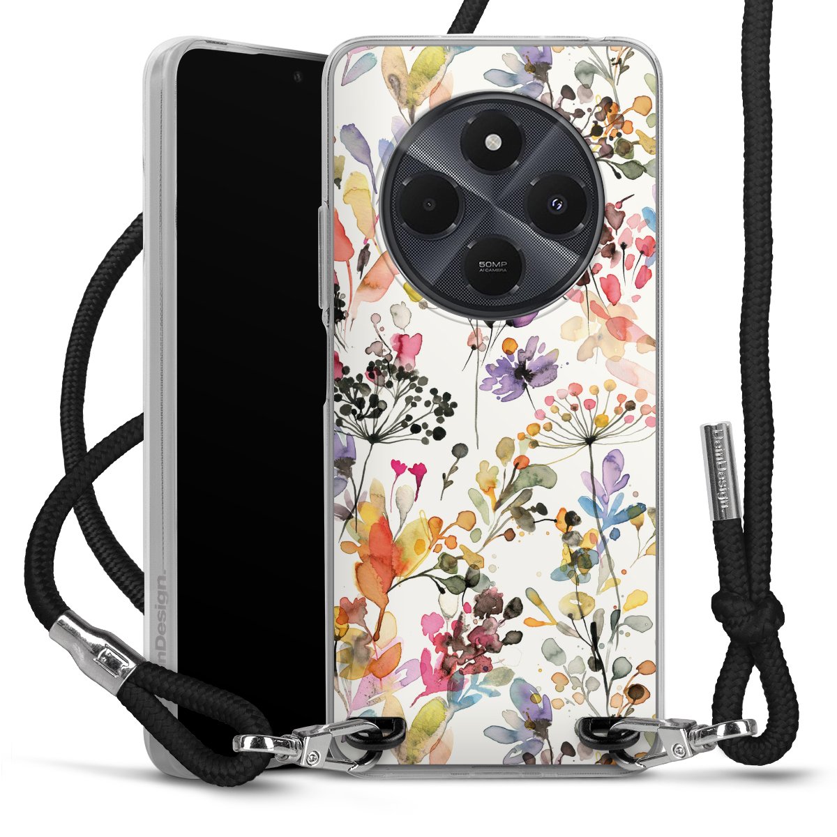 Keep your phone handy at all times, thanks to the flexible silicone case with a textile strap.