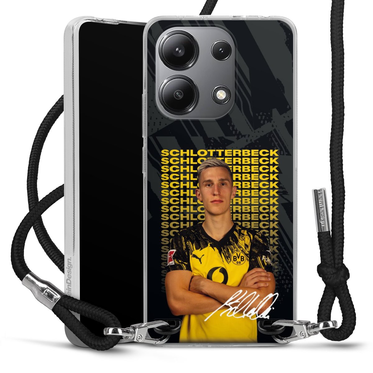 Keep your phone handy at all times, thanks to the flexible silicone case with a textile strap.