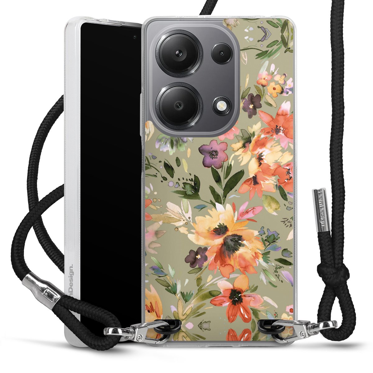 Keep your phone handy at all times, thanks to the flexible silicone case with a textile strap.
