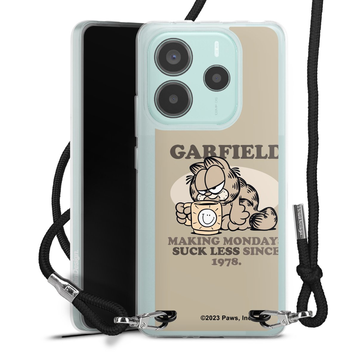 Keep your phone handy at all times, thanks to the flexible silicone case with a textile strap.