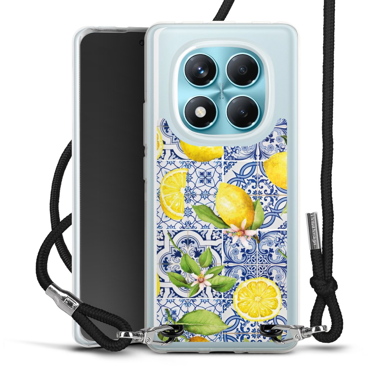 Keep your phone handy at all times, thanks to the flexible silicone case with a textile strap.