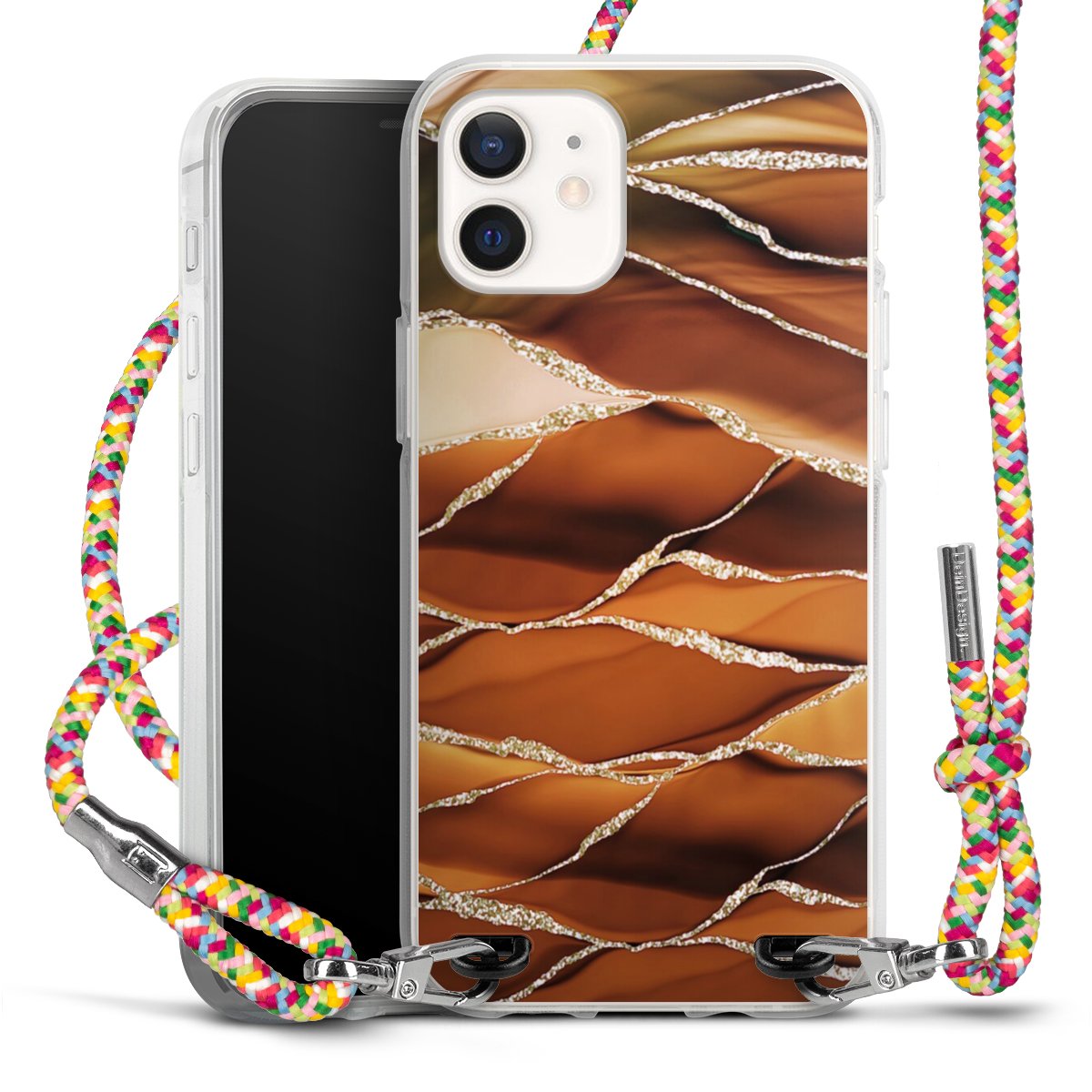 The flexible case is made from a highquality TPU material (thermoplastic Polyurethan). Thanks to its longlasting and break resistant characterisitcs, the case is flexible yet consistent in form and has a great grip and feel. The textile strap made from Polyester gives a chic yet casual accent allowing you to carry your phone like a bag or necklace - a practical gadget perfect for your next adventure. The textile strap is about 1.70 meters long and the length can easily be adjusted through the knots. Our Carry Case is available in Colourful, Mint-Camouflage, Very-Berry, Sahara-Sand and Sparkling-Neon. The ends of the textile strap are covered with metallic end caps to protect them against fraying.