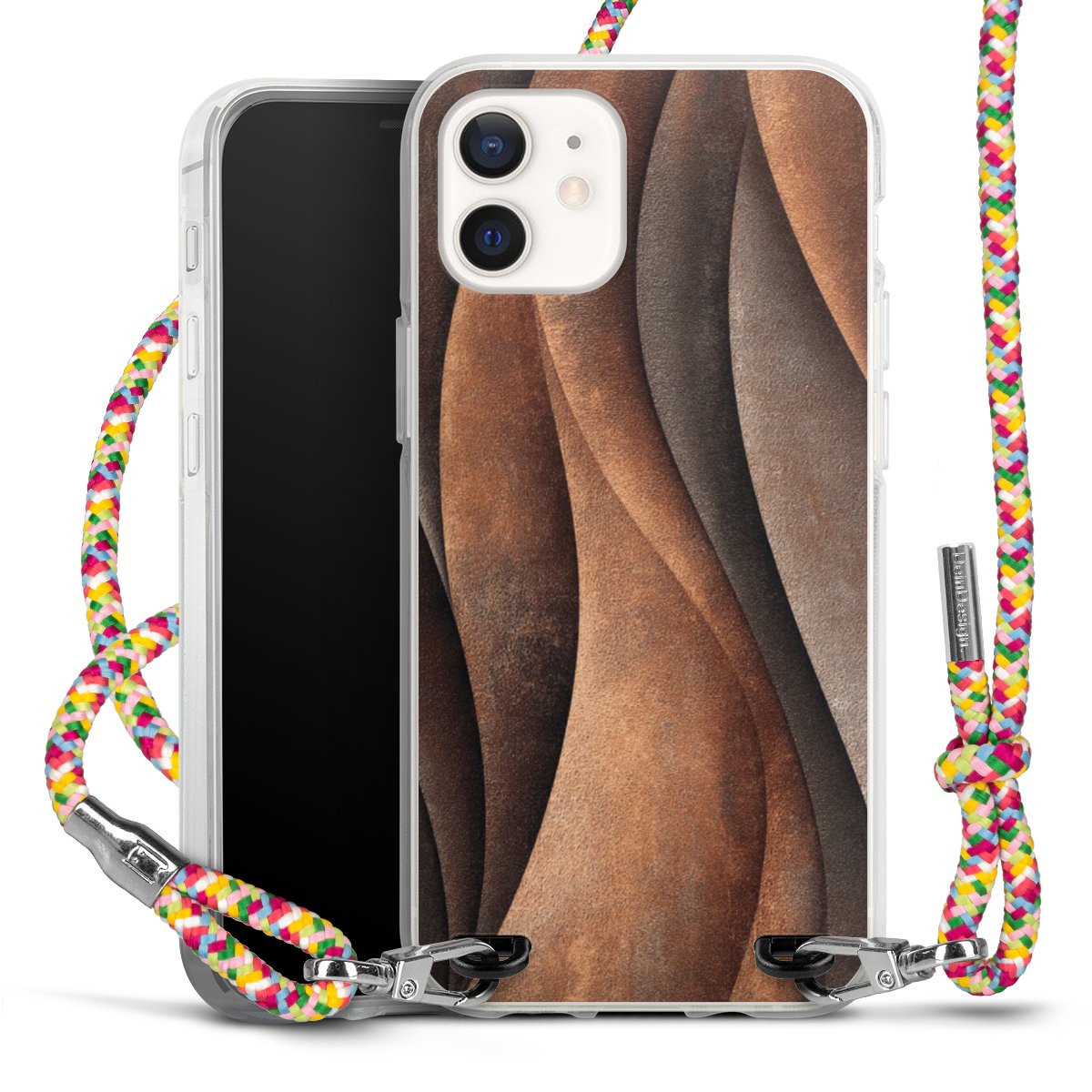 The flexible case is made from a highquality TPU material (thermoplastic Polyurethan). Thanks to its longlasting and break resistant characterisitcs, the case is flexible yet consistent in form and has a great grip and feel. The textile strap made from Polyester gives a chic yet casual accent allowing you to carry your phone like a bag or necklace - a practical gadget perfect for your next adventure. The textile strap is about 1.70 meters long and the length can easily be adjusted through the knots. Our Carry Case is available in Colourful, Mint-Camouflage, Very-Berry, Sahara-Sand and Sparkling-Neon. The ends of the textile strap are covered with metallic end caps to protect them against fraying.