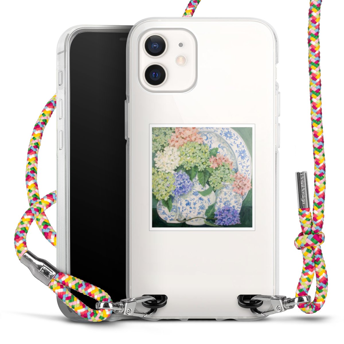 The flexible case is made from a highquality TPU material (thermoplastic Polyurethan). Thanks to its longlasting and break resistant characterisitcs, the case is flexible yet consistent in form and has a great grip and feel. The textile strap made from Polyester gives a chic yet casual accent allowing you to carry your phone like a bag or necklace - a practical gadget perfect for your next adventure. The textile strap is about 1.70 meters long and the length can easily be adjusted through the knots. Our Carry Case is available in Colourful, Mint-Camouflage, Very-Berry, Sahara-Sand and Sparkling-Neon. The ends of the textile strap are covered with metallic end caps to protect them against fraying.