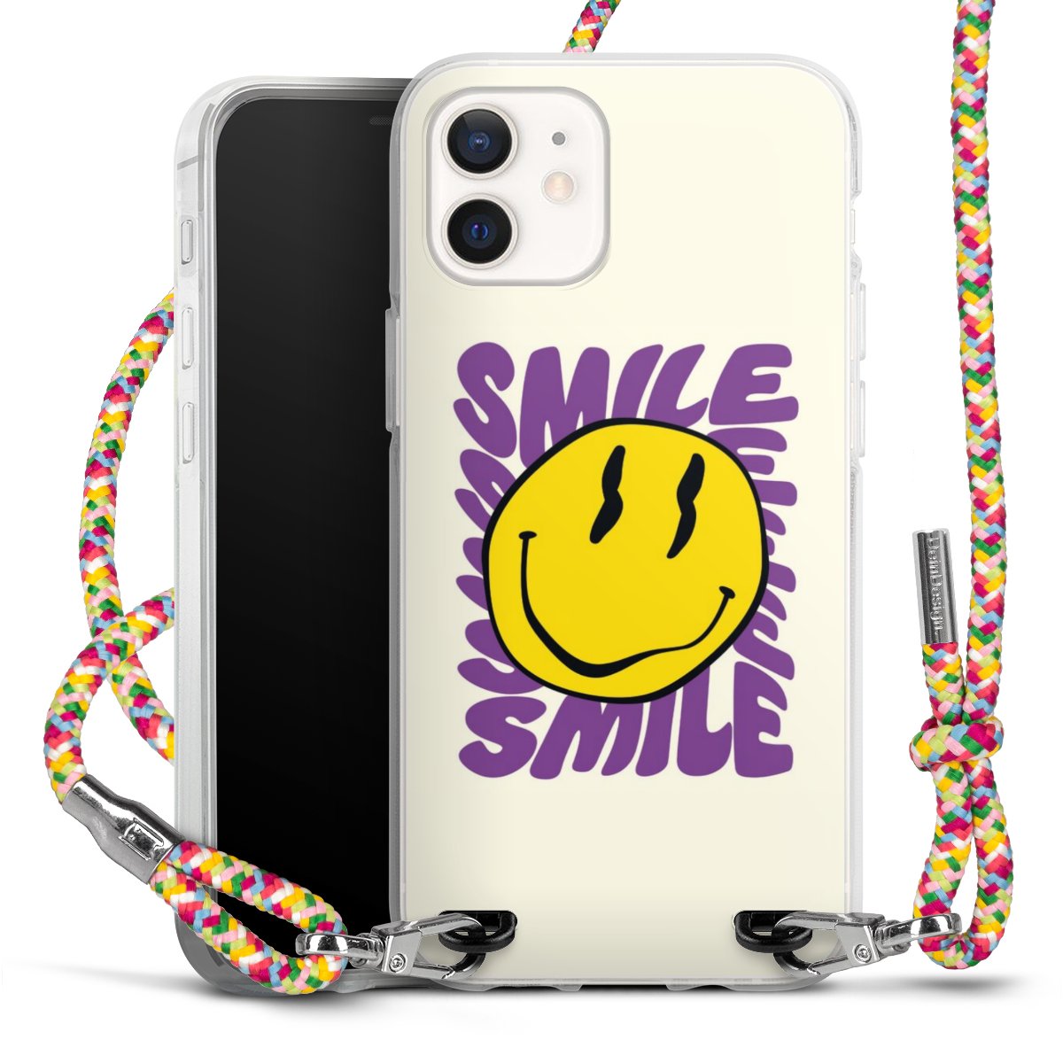 The flexible case is made from a highquality TPU material (thermoplastic Polyurethan). Thanks to its longlasting and break resistant characterisitcs, the case is flexible yet consistent in form and has a great grip and feel. The textile strap made from Polyester gives a chic yet casual accent allowing you to carry your phone like a bag or necklace - a practical gadget perfect for your next adventure. The textile strap is about 1.70 meters long and the length can easily be adjusted through the knots. Our Carry Case is available in Colourful, Mint-Camouflage, Very-Berry, Sahara-Sand and Sparkling-Neon. The ends of the textile strap are covered with metallic end caps to protect them against fraying.