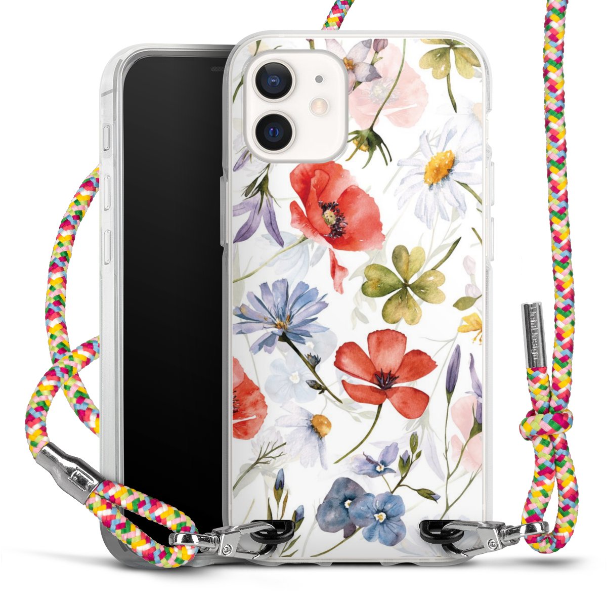 The flexible case is made from a highquality TPU material (thermoplastic Polyurethan). Thanks to its longlasting and break resistant characterisitcs, the case is flexible yet consistent in form and has a great grip and feel. The textile strap made from Polyester gives a chic yet casual accent allowing you to carry your phone like a bag or necklace - a practical gadget perfect for your next adventure. The textile strap is about 1.70 meters long and the length can easily be adjusted through the knots. Our Carry Case is available in Colourful, Mint-Camouflage, Very-Berry, Sahara-Sand and Sparkling-Neon. The ends of the textile strap are covered with metallic end caps to protect them against fraying.