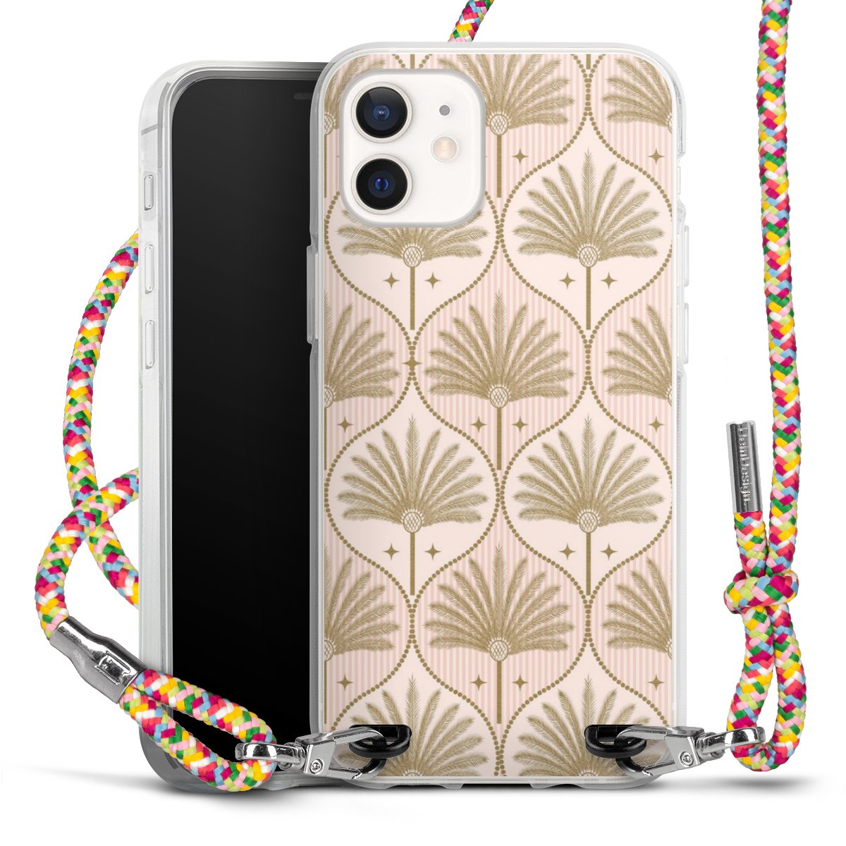 The flexible case is made from a highquality TPU material (thermoplastic Polyurethan). Thanks to its longlasting and break resistant characterisitcs, the case is flexible yet consistent in form and has a great grip and feel. The textile strap made from Polyester gives a chic yet casual accent allowing you to carry your phone like a bag or necklace - a practical gadget perfect for your next adventure. The textile strap is about 1.70 meters long and the length can easily be adjusted through the knots. Our Carry Case is available in Colourful, Mint-Camouflage, Very-Berry, Sahara-Sand and Sparkling-Neon. The ends of the textile strap are covered with metallic end caps to protect them against fraying.