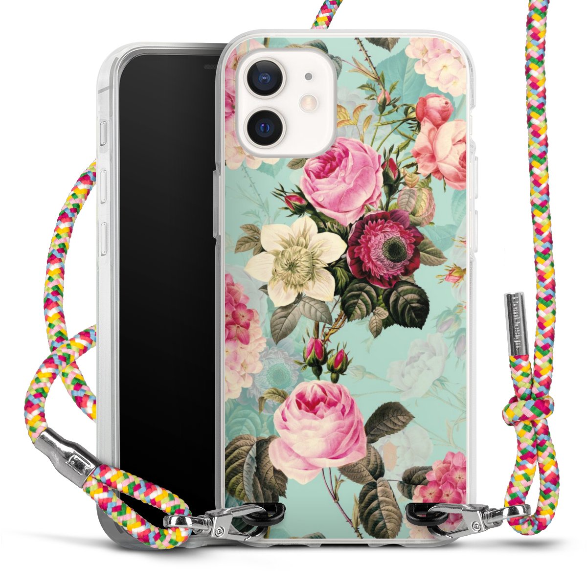 The flexible case is made from a highquality TPU material (thermoplastic Polyurethan). Thanks to its longlasting and break resistant characterisitcs, the case is flexible yet consistent in form and has a great grip and feel. The textile strap made from Polyester gives a chic yet casual accent allowing you to carry your phone like a bag or necklace - a practical gadget perfect for your next adventure. The textile strap is about 1.70 meters long and the length can easily be adjusted through the knots. Our Carry Case is available in Colourful, Mint-Camouflage, Very-Berry, Sahara-Sand and Sparkling-Neon. The ends of the textile strap are covered with metallic end caps to protect them against fraying.