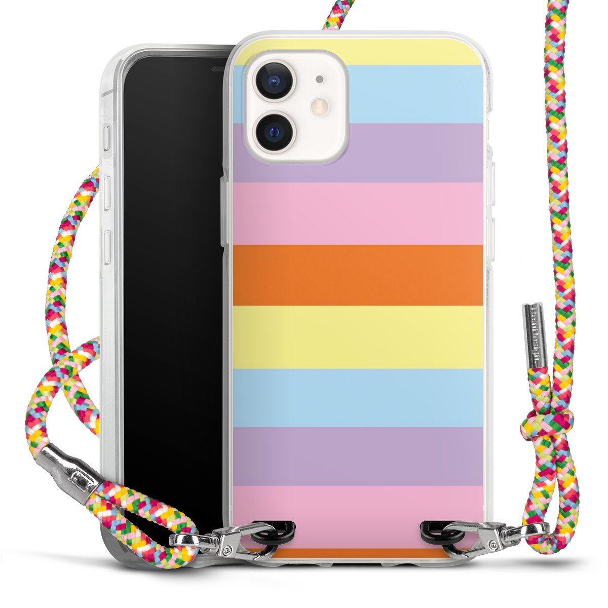 The flexible case is made from a highquality TPU material (thermoplastic Polyurethan). Thanks to its longlasting and break resistant characterisitcs, the case is flexible yet consistent in form and has a great grip and feel. The textile strap made from Polyester gives a chic yet casual accent allowing you to carry your phone like a bag or necklace - a practical gadget perfect for your next adventure. The textile strap is about 1.70 meters long and the length can easily be adjusted through the knots. Our Carry Case is available in Colourful, Mint-Camouflage, Very-Berry, Sahara-Sand and Sparkling-Neon. The ends of the textile strap are covered with metallic end caps to protect them against fraying.