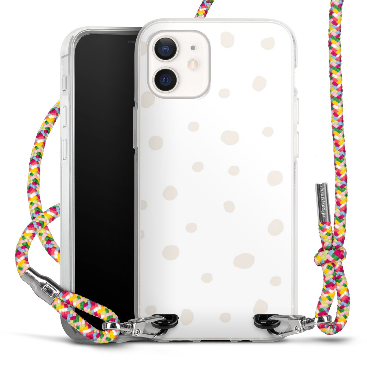 The flexible case is made from a highquality TPU material (thermoplastic Polyurethan). Thanks to its longlasting and break resistant characterisitcs, the case is flexible yet consistent in form and has a great grip and feel. The textile strap made from Polyester gives a chic yet casual accent allowing you to carry your phone like a bag or necklace - a practical gadget perfect for your next adventure. The textile strap is about 1.70 meters long and the length can easily be adjusted through the knots. Our Carry Case is available in Colourful, Mint-Camouflage, Very-Berry, Sahara-Sand and Sparkling-Neon. The ends of the textile strap are covered with metallic end caps to protect them against fraying.