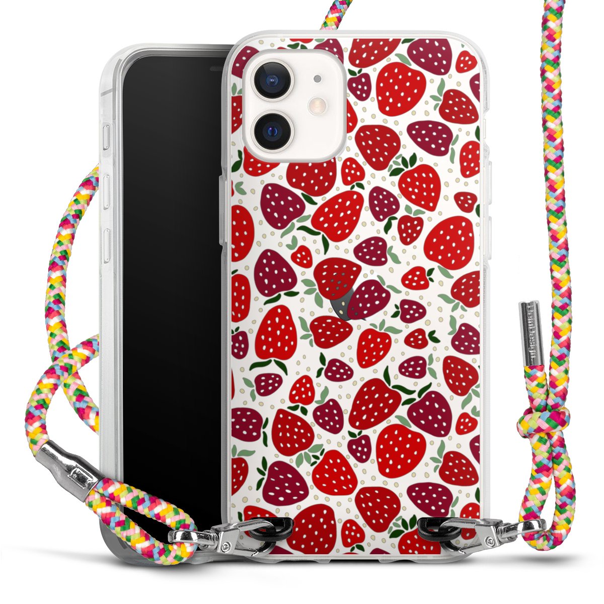 The flexible case is made from a highquality TPU material (thermoplastic Polyurethan). Thanks to its longlasting and break resistant characterisitcs, the case is flexible yet consistent in form and has a great grip and feel. The textile strap made from Polyester gives a chic yet casual accent allowing you to carry your phone like a bag or necklace - a practical gadget perfect for your next adventure. The textile strap is about 1.70 meters long and the length can easily be adjusted through the knots. Our Carry Case is available in Colourful, Mint-Camouflage, Very-Berry, Sahara-Sand and Sparkling-Neon. The ends of the textile strap are covered with metallic end caps to protect them against fraying.