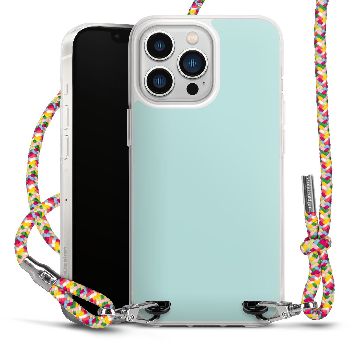 The flexible case is made from a highquality TPU material (thermoplastic Polyurethan). Thanks to its longlasting and break resistant characterisitcs, the case is flexible yet consistent in form and has a great grip and feel. The textile strap made from Polyester gives a chic yet casual accent allowing you to carry your phone like a bag or necklace - a practical gadget perfect for your next adventure. The textile strap is about 1.70 meters long and the length can easily be adjusted through the knots. Our Carry Case is available in Colourful, Mint-Camouflage, Very-Berry, Sahara-Sand and Sparkling-Neon. The ends of the textile strap are covered with metallic end caps to protect them against fraying.