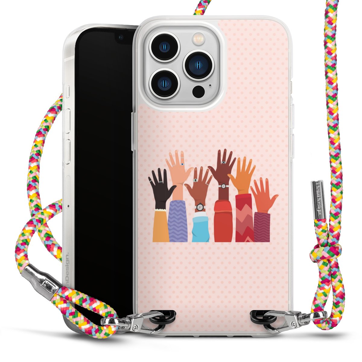 The flexible case is made from a highquality TPU material (thermoplastic Polyurethan). Thanks to its longlasting and break resistant characterisitcs, the case is flexible yet consistent in form and has a great grip and feel. The textile strap made from Polyester gives a chic yet casual accent allowing you to carry your phone like a bag or necklace - a practical gadget perfect for your next adventure. The textile strap is about 1.70 meters long and the length can easily be adjusted through the knots. Our Carry Case is available in Colourful, Mint-Camouflage, Very-Berry, Sahara-Sand and Sparkling-Neon. The ends of the textile strap are covered with metallic end caps to protect them against fraying.