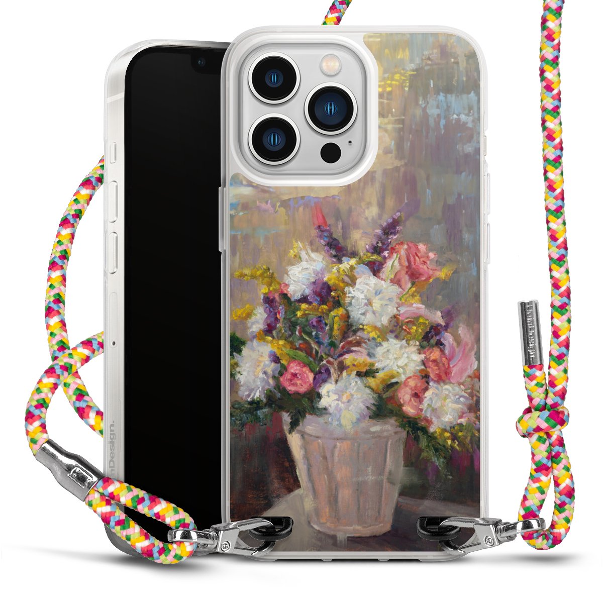The flexible case is made from a highquality TPU material (thermoplastic Polyurethan). Thanks to its longlasting and break resistant characterisitcs, the case is flexible yet consistent in form and has a great grip and feel. The textile strap made from Polyester gives a chic yet casual accent allowing you to carry your phone like a bag or necklace - a practical gadget perfect for your next adventure. The textile strap is about 1.70 meters long and the length can easily be adjusted through the knots. Our Carry Case is available in Colourful, Mint-Camouflage, Very-Berry, Sahara-Sand and Sparkling-Neon. The ends of the textile strap are covered with metallic end caps to protect them against fraying.