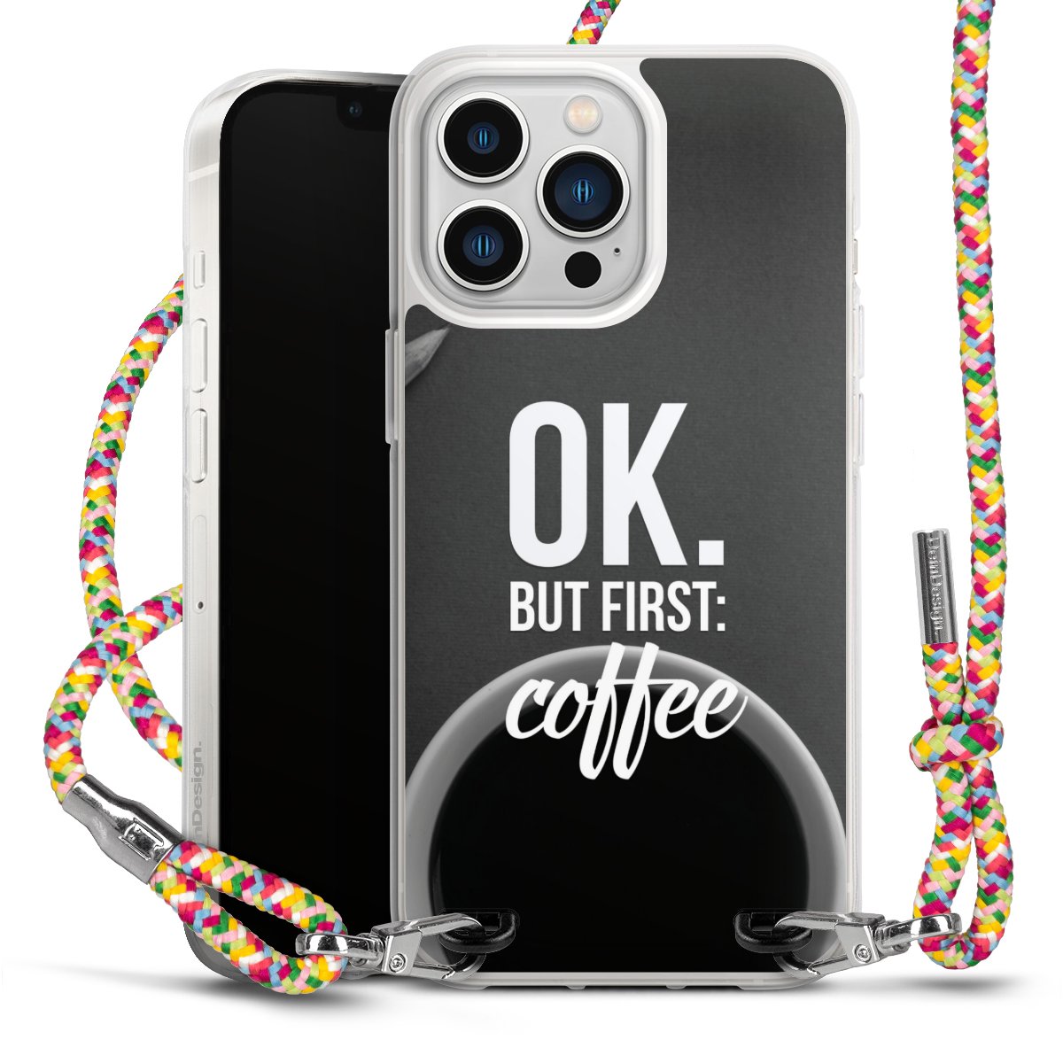 The flexible case is made from a highquality TPU material (thermoplastic Polyurethan). Thanks to its longlasting and break resistant characterisitcs, the case is flexible yet consistent in form and has a great grip and feel. The textile strap made from Polyester gives a chic yet casual accent allowing you to carry your phone like a bag or necklace - a practical gadget perfect for your next adventure. The textile strap is about 1.70 meters long and the length can easily be adjusted through the knots. Our Carry Case is available in Colourful, Mint-Camouflage, Very-Berry, Sahara-Sand and Sparkling-Neon. The ends of the textile strap are covered with metallic end caps to protect them against fraying.