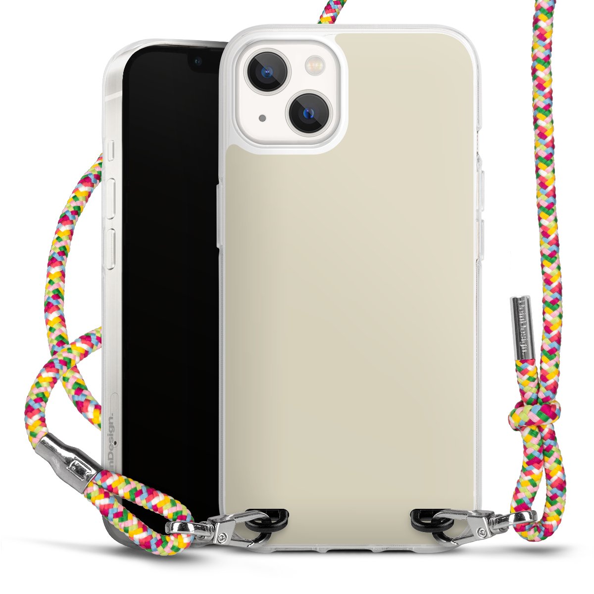 The flexible case is made from a highquality TPU material (thermoplastic Polyurethan). Thanks to its longlasting and break resistant characterisitcs, the case is flexible yet consistent in form and has a great grip and feel. The textile strap made from Polyester gives a chic yet casual accent allowing you to carry your phone like a bag or necklace - a practical gadget perfect for your next adventure. The textile strap is about 1.70 meters long and the length can easily be adjusted through the knots. Our Carry Case is available in Colourful, Mint-Camouflage, Very-Berry, Sahara-Sand and Sparkling-Neon. The ends of the textile strap are covered with metallic end caps to protect them against fraying.