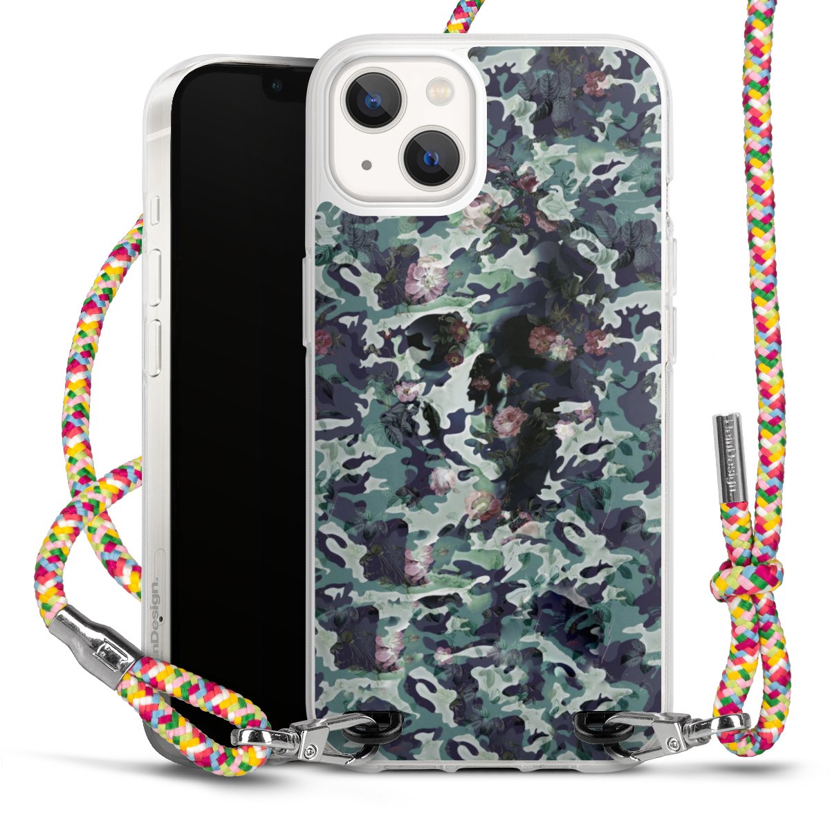 The flexible case is made from a highquality TPU material (thermoplastic Polyurethan). Thanks to its longlasting and break resistant characterisitcs, the case is flexible yet consistent in form and has a great grip and feel. The textile strap made from Polyester gives a chic yet casual accent allowing you to carry your phone like a bag or necklace - a practical gadget perfect for your next adventure. The textile strap is about 1.70 meters long and the length can easily be adjusted through the knots. Our Carry Case is available in Colourful, Mint-Camouflage, Very-Berry, Sahara-Sand and Sparkling-Neon. The ends of the textile strap are covered with metallic end caps to protect them against fraying.