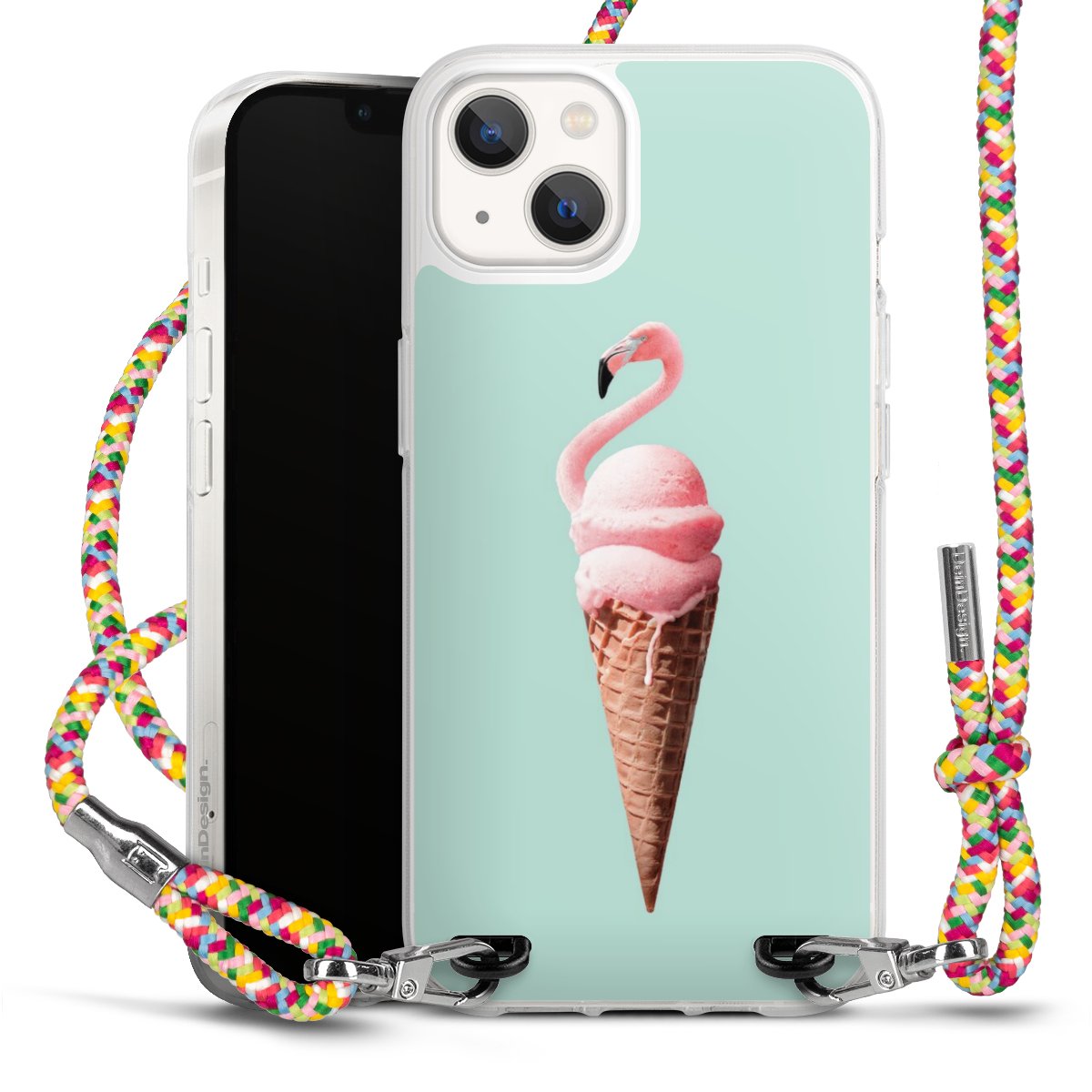 The flexible case is made from a highquality TPU material (thermoplastic Polyurethan). Thanks to its longlasting and break resistant characterisitcs, the case is flexible yet consistent in form and has a great grip and feel. The textile strap made from Polyester gives a chic yet casual accent allowing you to carry your phone like a bag or necklace - a practical gadget perfect for your next adventure. The textile strap is about 1.70 meters long and the length can easily be adjusted through the knots. Our Carry Case is available in Colourful, Mint-Camouflage, Very-Berry, Sahara-Sand and Sparkling-Neon. The ends of the textile strap are covered with metallic end caps to protect them against fraying.