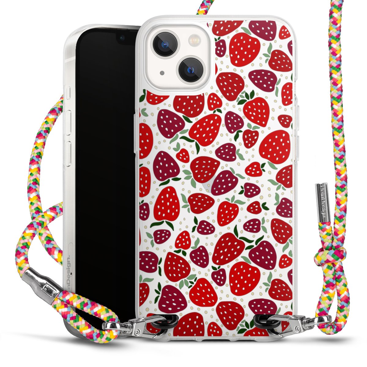 The flexible case is made from a highquality TPU material (thermoplastic Polyurethan). Thanks to its longlasting and break resistant characterisitcs, the case is flexible yet consistent in form and has a great grip and feel. The textile strap made from Polyester gives a chic yet casual accent allowing you to carry your phone like a bag or necklace - a practical gadget perfect for your next adventure. The textile strap is about 1.70 meters long and the length can easily be adjusted through the knots. Our Carry Case is available in Colourful, Mint-Camouflage, Very-Berry, Sahara-Sand and Sparkling-Neon. The ends of the textile strap are covered with metallic end caps to protect them against fraying.