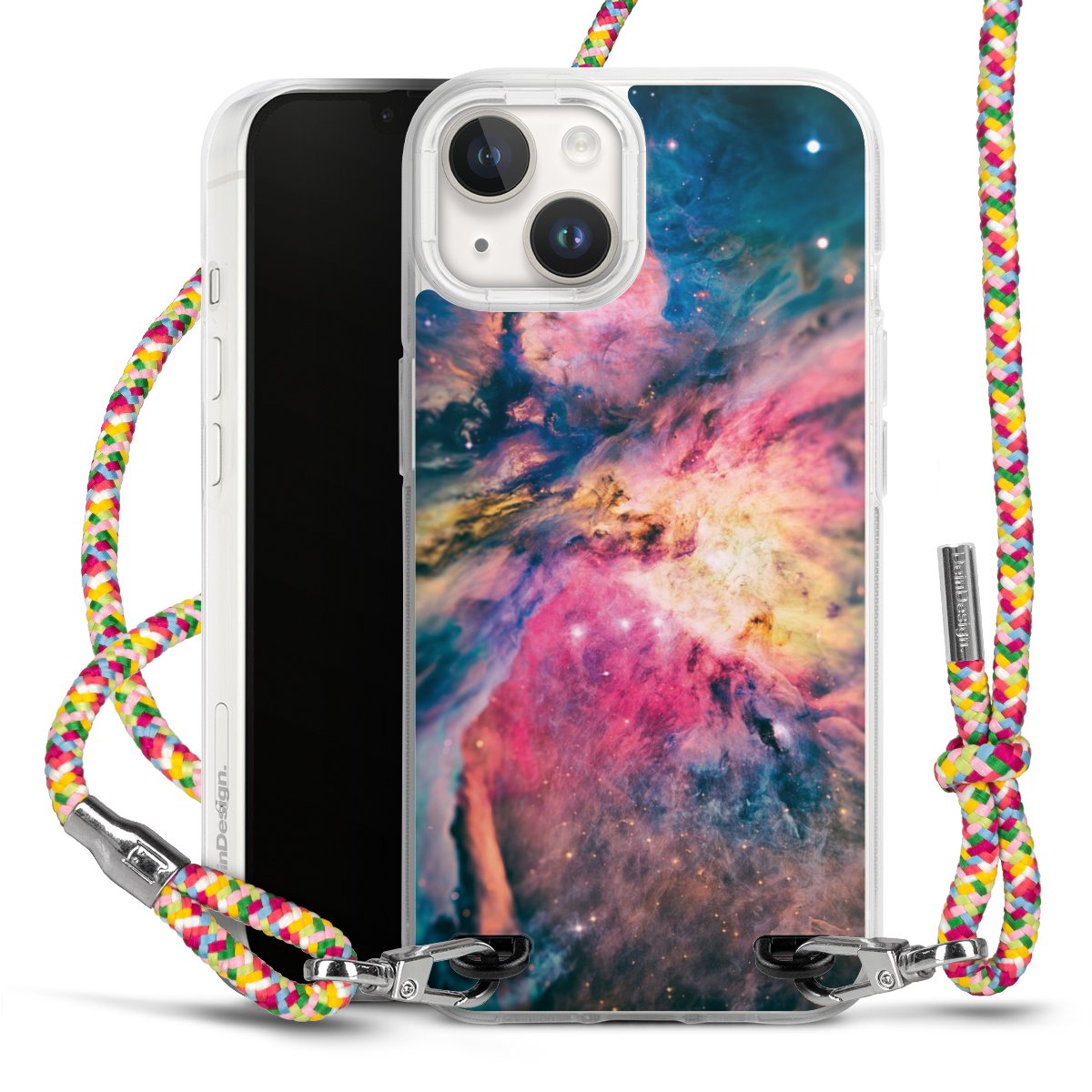 The flexible case is made from a highquality TPU material (thermoplastic Polyurethan). Thanks to its longlasting and break resistant characterisitcs, the case is flexible yet consistent in form and has a great grip and feel. The textile strap made from Polyester gives a chic yet casual accent allowing you to carry your phone like a bag or necklace - a practical gadget perfect for your next adventure. The textile strap is about 1.70 meters long and the length can easily be adjusted through the knots. Our Carry Case is available in Colourful, Mint-Camouflage, Very-Berry, Sahara-Sand and Sparkling-Neon. The ends of the textile strap are covered with metallic end caps to protect them against fraying.