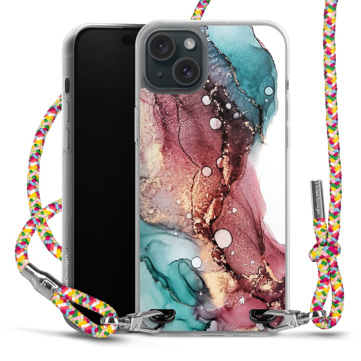 The flexible case is made from a highquality TPU material (thermoplastic Polyurethan). Thanks to its longlasting and break resistant characterisitcs, the case is flexible yet consistent in form and has a great grip and feel. The textile strap made from Polyester gives a chic yet casual accent allowing you to carry your phone like a bag or necklace - a practical gadget perfect for your next adventure. The textile strap is about 1.70 meters long and the length can easily be adjusted through the knots. Our Carry Case is available in Colourful, Mint-Camouflage, Very-Berry, Sahara-Sand and Sparkling-Neon. The ends of the textile strap are covered with metallic end caps to protect them against fraying.