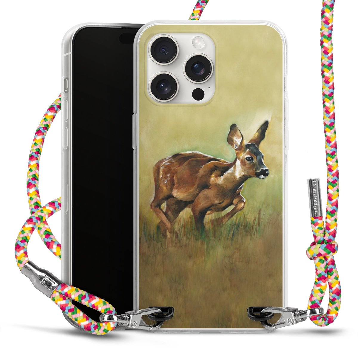 The flexible case is made from a highquality TPU material (thermoplastic Polyurethan). Thanks to its longlasting and break resistant characterisitcs, the case is flexible yet consistent in form and has a great grip and feel. The textile strap made from Polyester gives a chic yet casual accent allowing you to carry your phone like a bag or necklace - a practical gadget perfect for your next adventure. The textile strap is about 1.70 meters long and the length can easily be adjusted through the knots. Our Carry Case is available in Colourful, Mint-Camouflage, Very-Berry, Sahara-Sand and Sparkling-Neon. The ends of the textile strap are covered with metallic end caps to protect them against fraying.