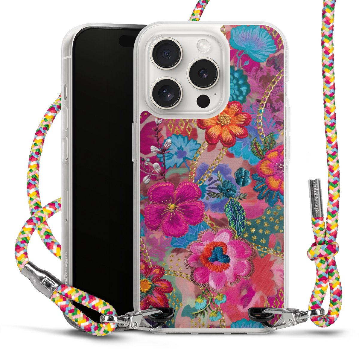 The flexible case is made from a highquality TPU material (thermoplastic Polyurethan). Thanks to its longlasting and break resistant characterisitcs, the case is flexible yet consistent in form and has a great grip and feel. The textile strap made from Polyester gives a chic yet casual accent allowing you to carry your phone like a bag or necklace - a practical gadget perfect for your next adventure. The textile strap is about 1.70 meters long and the length can easily be adjusted through the knots. Our Carry Case is available in Colourful, Mint-Camouflage, Very-Berry, Sahara-Sand and Sparkling-Neon. The ends of the textile strap are covered with metallic end caps to protect them against fraying.