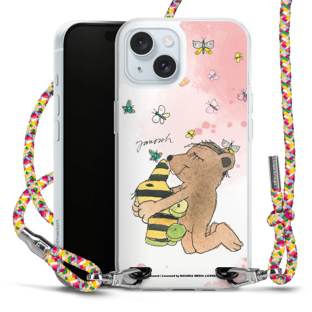 The flexible case is made from a highquality TPU material (thermoplastic Polyurethan). Thanks to its longlasting and break resistant characterisitcs, the case is flexible yet consistent in form and has a great grip and feel. The textile strap made from Polyester gives a chic yet casual accent allowing you to carry your phone like a bag or necklace - a practical gadget perfect for your next adventure. The textile strap is about 1.70 meters long and the length can easily be adjusted through the knots. Our Carry Case is available in Colourful, Mint-Camouflage, Very-Berry, Sahara-Sand and Sparkling-Neon. The ends of the textile strap are covered with metallic end caps to protect them against fraying.