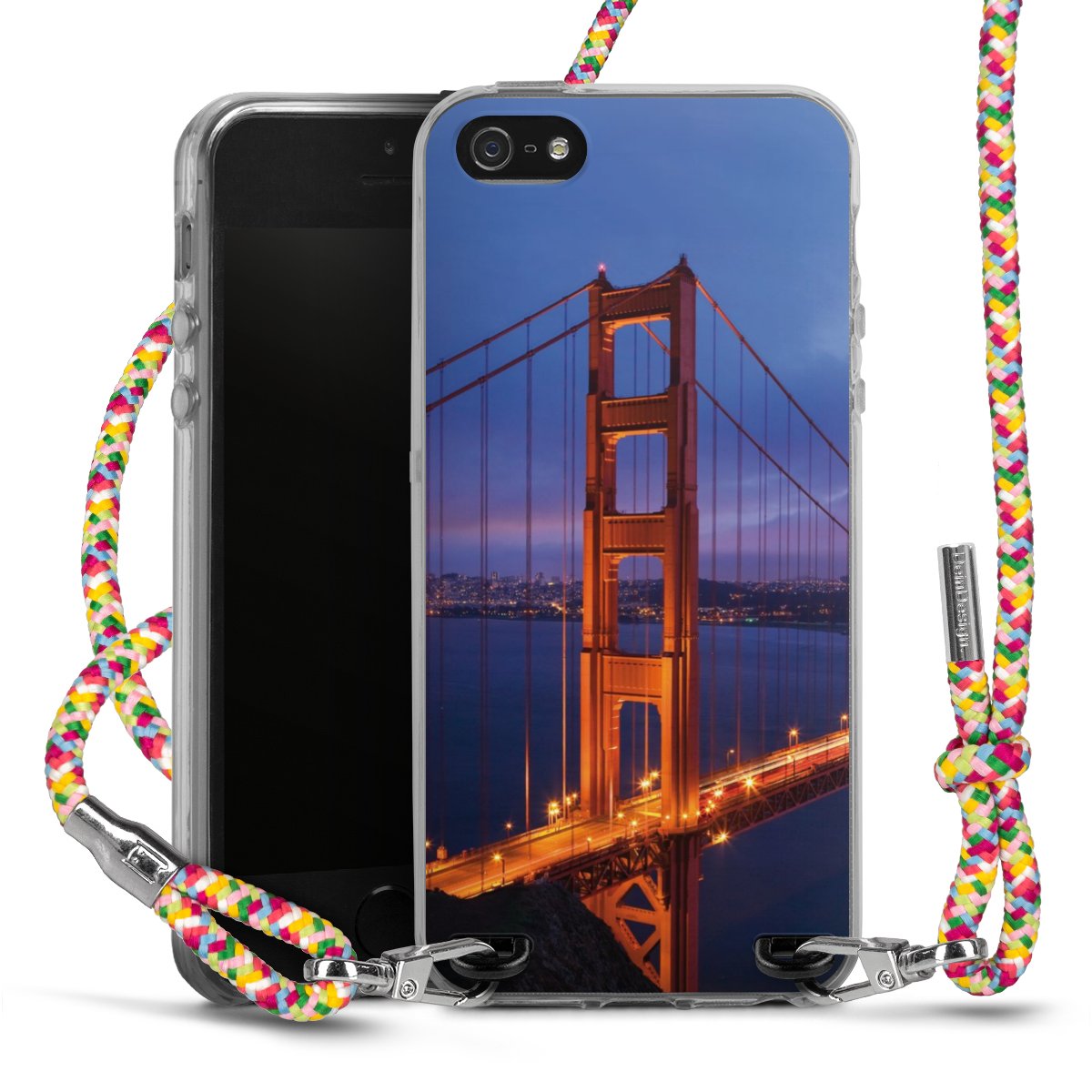 The flexible case is made from a highquality TPU material (thermoplastic Polyurethan). Thanks to its longlasting and break resistant characterisitcs, the case is flexible yet consistent in form and has a great grip and feel. The textile strap made from Polyester gives a chic yet casual accent allowing you to carry your phone like a bag or necklace - a practical gadget perfect for your next adventure. The textile strap is about 1.70 meters long and the length can easily be adjusted through the knots. Our Carry Case is available in Colourful, Mint-Camouflage, Very-Berry, Sahara-Sand and Sparkling-Neon. The ends of the textile strap are covered with metallic end caps to protect them against fraying.