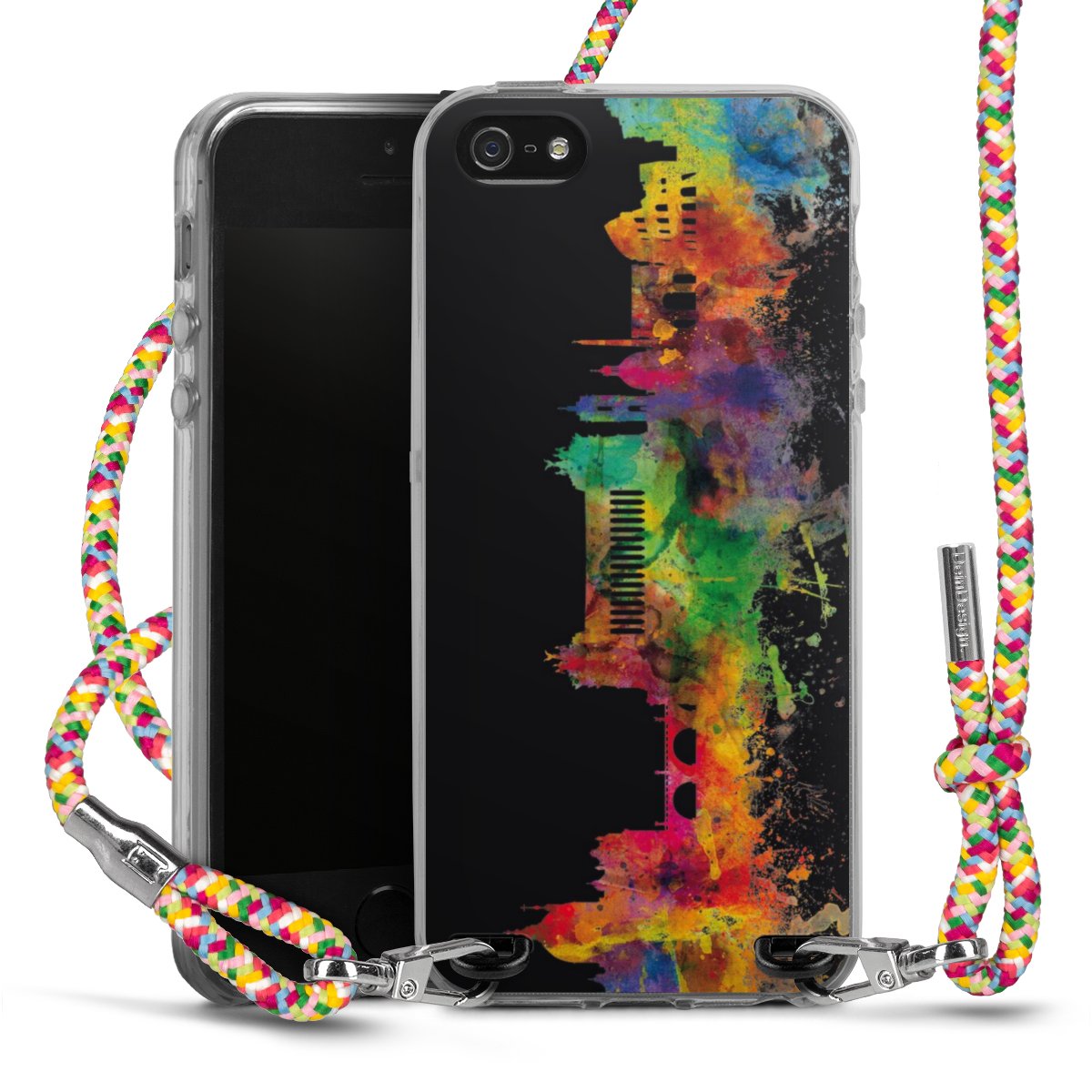 The flexible case is made from a highquality TPU material (thermoplastic Polyurethan). Thanks to its longlasting and break resistant characterisitcs, the case is flexible yet consistent in form and has a great grip and feel. The textile strap made from Polyester gives a chic yet casual accent allowing you to carry your phone like a bag or necklace - a practical gadget perfect for your next adventure. The textile strap is about 1.70 meters long and the length can easily be adjusted through the knots. Our Carry Case is available in Colourful, Mint-Camouflage, Very-Berry, Sahara-Sand and Sparkling-Neon. The ends of the textile strap are covered with metallic end caps to protect them against fraying.
