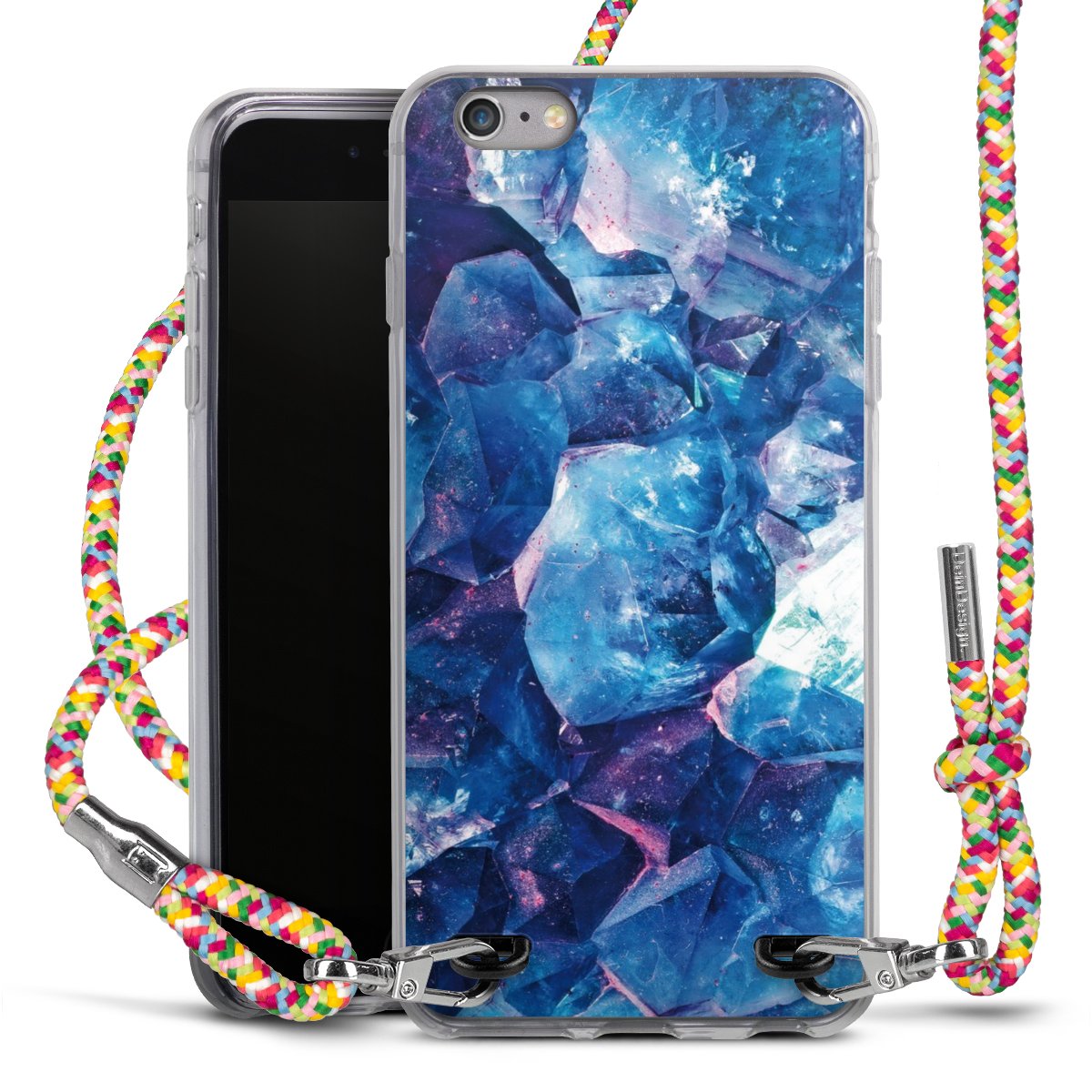 The flexible case is made from a highquality TPU material (thermoplastic Polyurethan). Thanks to its longlasting and break resistant characterisitcs, the case is flexible yet consistent in form and has a great grip and feel. The textile strap made from Polyester gives a chic yet casual accent allowing you to carry your phone like a bag or necklace - a practical gadget perfect for your next adventure. The textile strap is about 1.70 meters long and the length can easily be adjusted through the knots. Our Carry Case is available in Colourful, Mint-Camouflage, Very-Berry, Sahara-Sand and Sparkling-Neon. The ends of the textile strap are covered with metallic end caps to protect them against fraying.