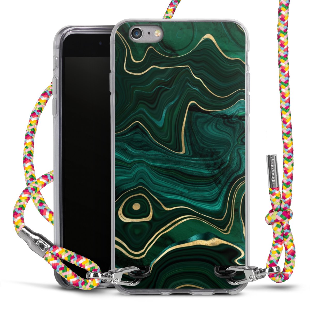 The flexible case is made from a highquality TPU material (thermoplastic Polyurethan). Thanks to its longlasting and break resistant characterisitcs, the case is flexible yet consistent in form and has a great grip and feel. The textile strap made from Polyester gives a chic yet casual accent allowing you to carry your phone like a bag or necklace - a practical gadget perfect for your next adventure. The textile strap is about 1.70 meters long and the length can easily be adjusted through the knots. Our Carry Case is available in Colourful, Mint-Camouflage, Very-Berry, Sahara-Sand and Sparkling-Neon. The ends of the textile strap are covered with metallic end caps to protect them against fraying.