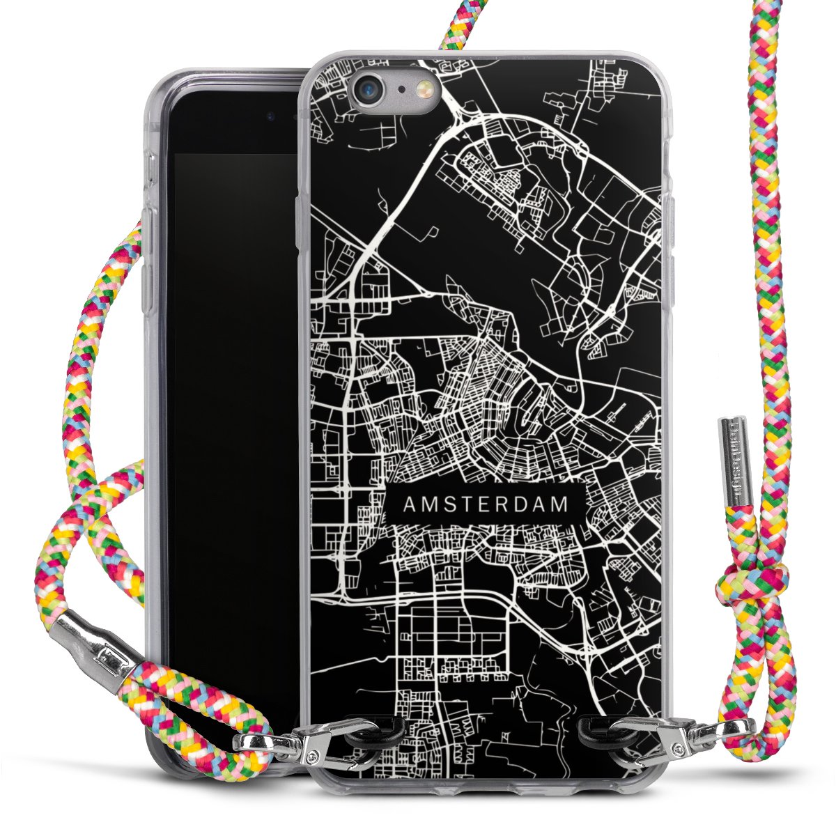 The flexible case is made from a highquality TPU material (thermoplastic Polyurethan). Thanks to its longlasting and break resistant characterisitcs, the case is flexible yet consistent in form and has a great grip and feel. The textile strap made from Polyester gives a chic yet casual accent allowing you to carry your phone like a bag or necklace - a practical gadget perfect for your next adventure. The textile strap is about 1.70 meters long and the length can easily be adjusted through the knots. Our Carry Case is available in Colourful, Mint-Camouflage, Very-Berry, Sahara-Sand and Sparkling-Neon. The ends of the textile strap are covered with metallic end caps to protect them against fraying.