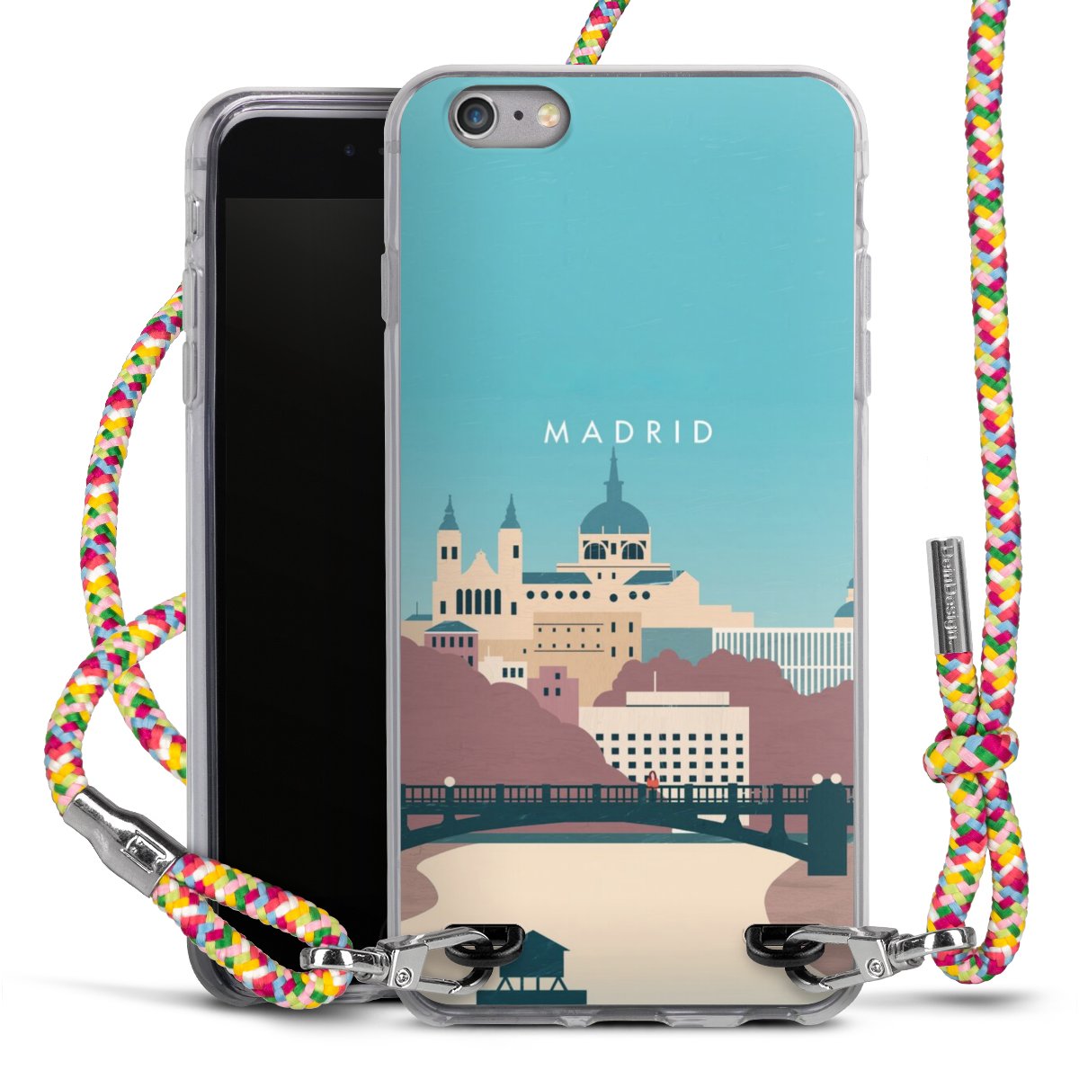 The flexible case is made from a highquality TPU material (thermoplastic Polyurethan). Thanks to its longlasting and break resistant characterisitcs, the case is flexible yet consistent in form and has a great grip and feel. The textile strap made from Polyester gives a chic yet casual accent allowing you to carry your phone like a bag or necklace - a practical gadget perfect for your next adventure. The textile strap is about 1.70 meters long and the length can easily be adjusted through the knots. Our Carry Case is available in Colourful, Mint-Camouflage, Very-Berry, Sahara-Sand and Sparkling-Neon. The ends of the textile strap are covered with metallic end caps to protect them against fraying.