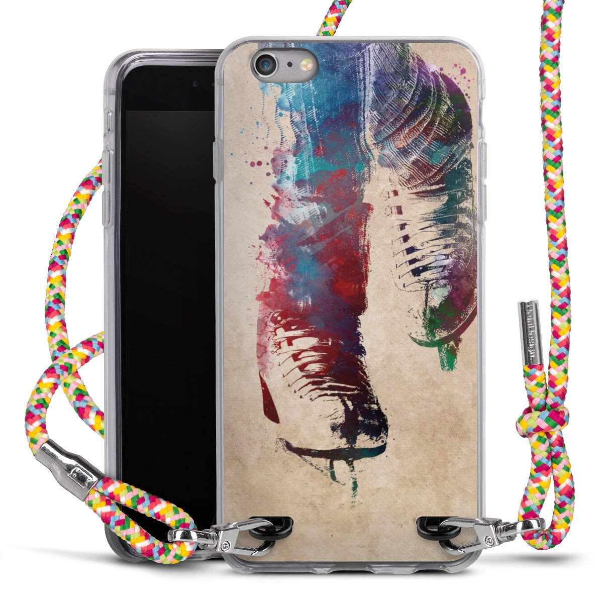 The flexible case is made from a highquality TPU material (thermoplastic Polyurethan). Thanks to its longlasting and break resistant characterisitcs, the case is flexible yet consistent in form and has a great grip and feel. The textile strap made from Polyester gives a chic yet casual accent allowing you to carry your phone like a bag or necklace - a practical gadget perfect for your next adventure. The textile strap is about 1.70 meters long and the length can easily be adjusted through the knots. Our Carry Case is available in Colourful, Mint-Camouflage, Very-Berry, Sahara-Sand and Sparkling-Neon. The ends of the textile strap are covered with metallic end caps to protect them against fraying.