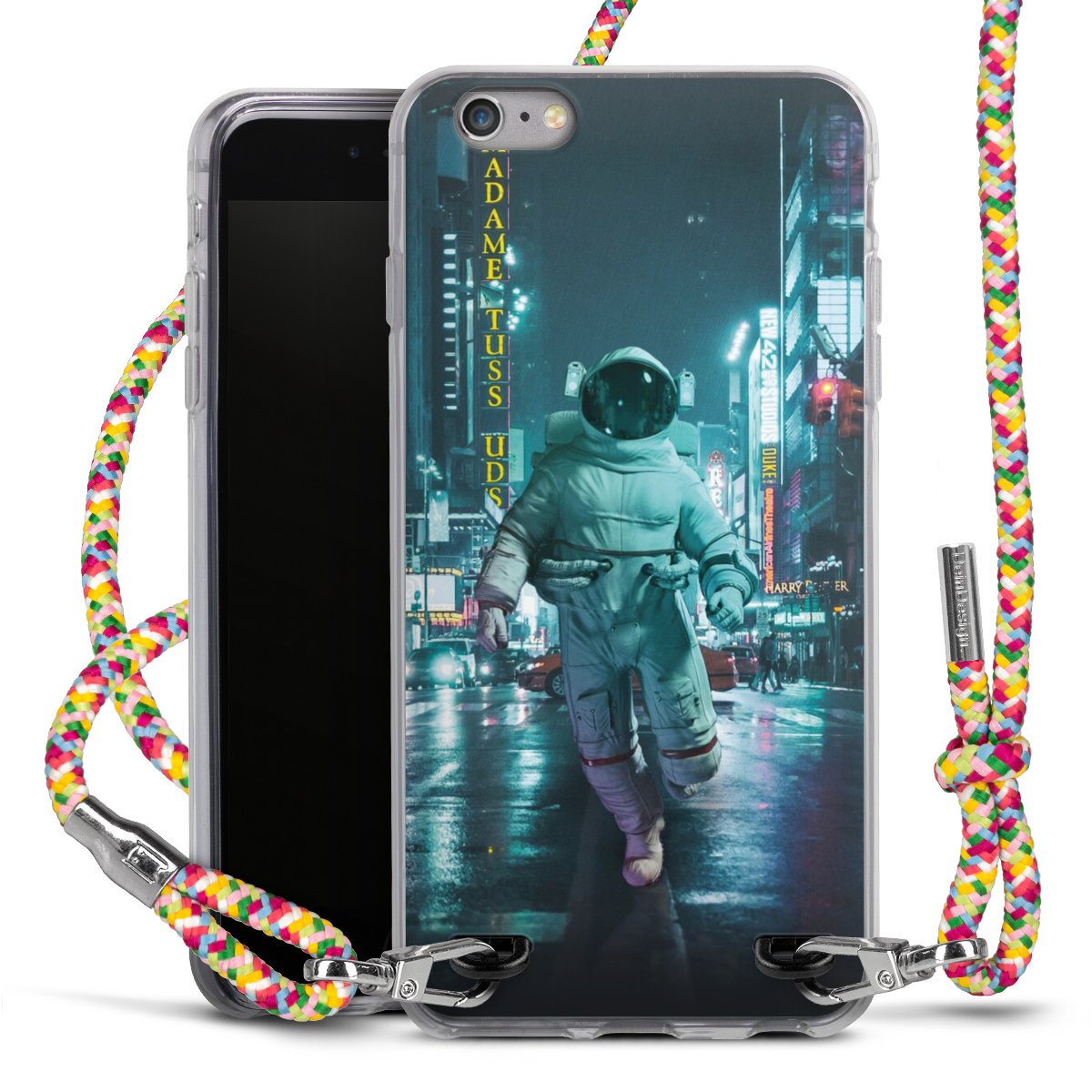 The flexible case is made from a highquality TPU material (thermoplastic Polyurethan). Thanks to its longlasting and break resistant characterisitcs, the case is flexible yet consistent in form and has a great grip and feel. The textile strap made from Polyester gives a chic yet casual accent allowing you to carry your phone like a bag or necklace - a practical gadget perfect for your next adventure. The textile strap is about 1.70 meters long and the length can easily be adjusted through the knots. Our Carry Case is available in Colourful, Mint-Camouflage, Very-Berry, Sahara-Sand and Sparkling-Neon. The ends of the textile strap are covered with metallic end caps to protect them against fraying.