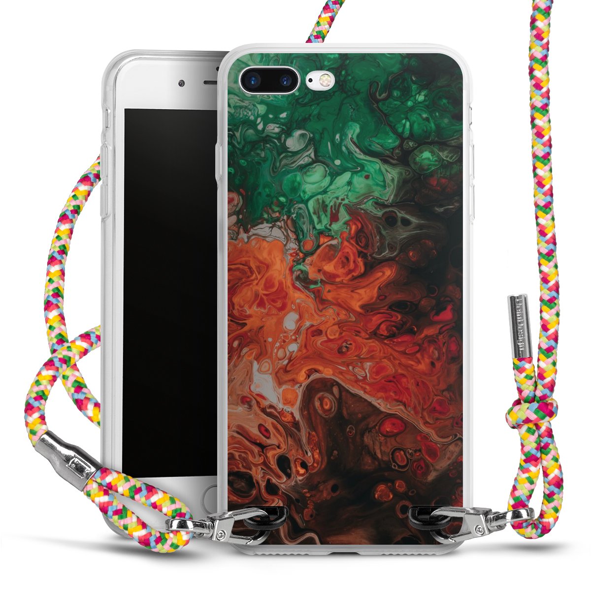The flexible case is made from a highquality TPU material (thermoplastic Polyurethan). Thanks to its longlasting and break resistant characterisitcs, the case is flexible yet consistent in form and has a great grip and feel. The textile strap made from Polyester gives a chic yet casual accent allowing you to carry your phone like a bag or necklace - a practical gadget perfect for your next adventure. The textile strap is about 1.70 meters long and the length can easily be adjusted through the knots. Our Carry Case is available in Colourful, Mint-Camouflage, Very-Berry, Sahara-Sand and Sparkling-Neon. The ends of the textile strap are covered with metallic end caps to protect them against fraying.